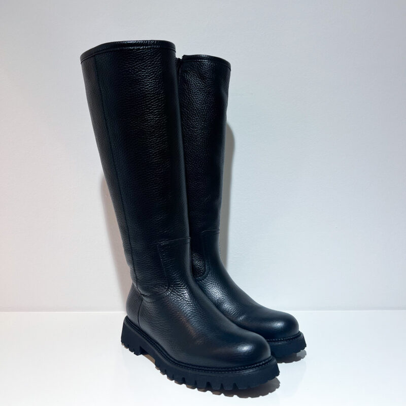 Stiefel aus genarbtem Kalbsleder mit seitlichem Reißverschluss und einem kompletten Innenfutter aus Lammfell. Die rutschhemmende Laufsohle aus Gummi rundet den Tragekomfort ab.